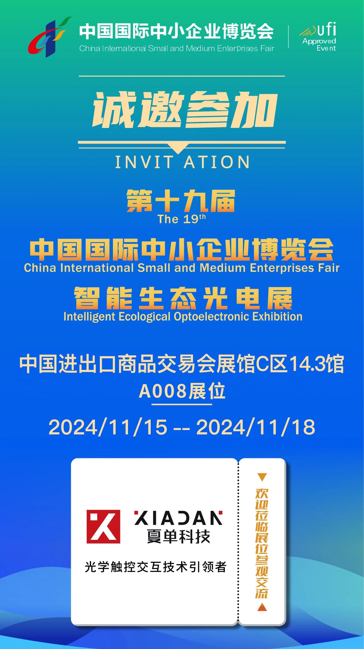 展会预告 | 11月15-18日,夏单科技与您相约第十九届中国国际中小企业博览会智能生态光电展