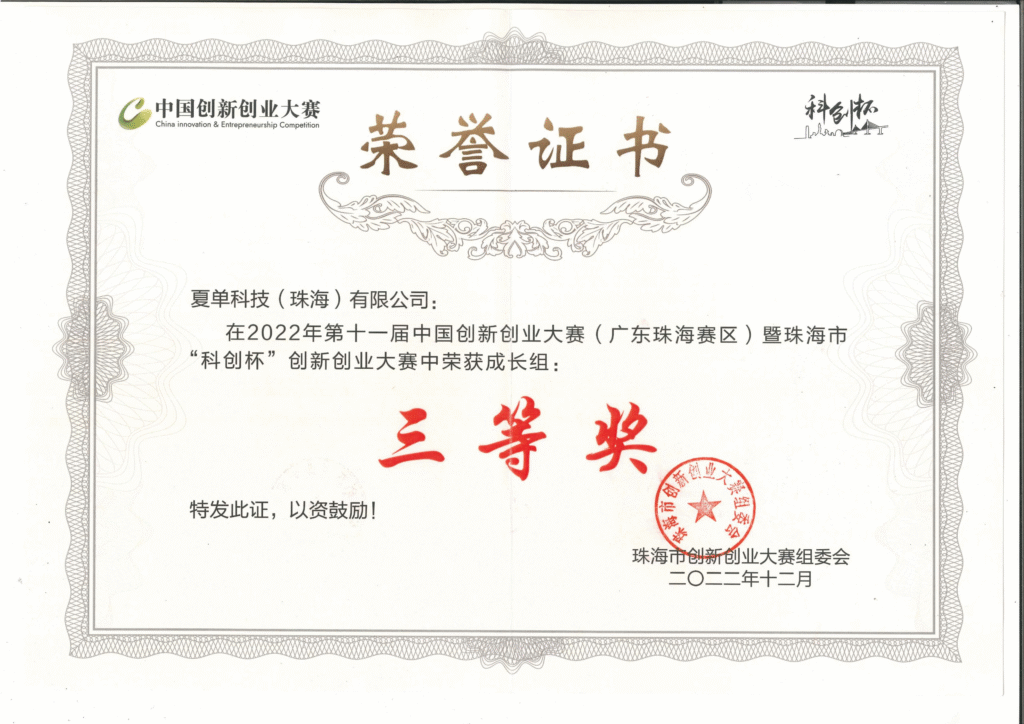 In December, 2022, our company received the third prize in the “Science and Innovation Cup” Innovation and Entrepreneurship Competition in Zhuhai, 2022.