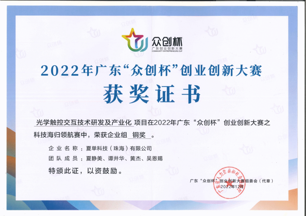 In November, 2022, our company won the Bronze Award in the “Overseas Chinese Technology Leaders Competition” of the “Mass Entrepreneurship and Innovation Cup” in Guangdong Province, 2022.